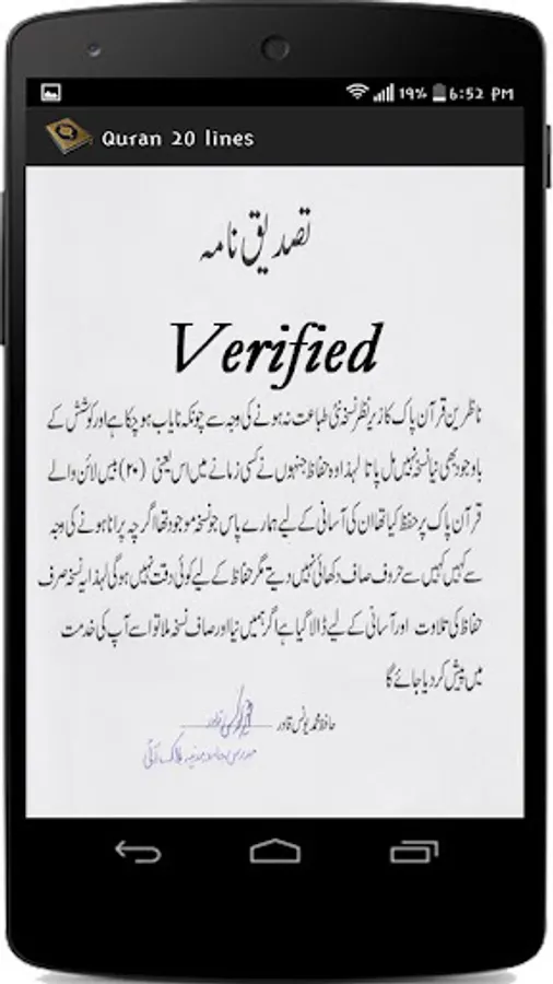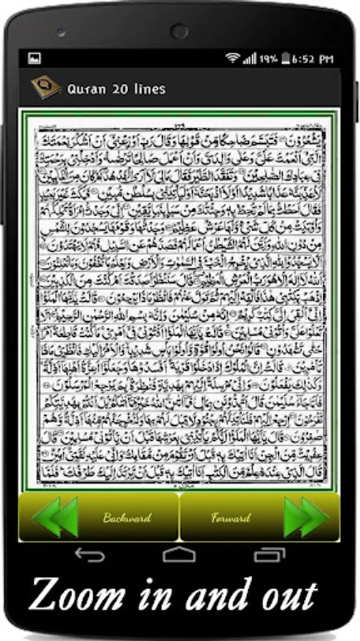 There are many Hufaz which have memorized Quran Shareef based on 20 lines. But Unfortunately its not available now both in markets and on play store. We have made efforts in getting only one copy but its very old and the words are mis-printed some where. But Of course it would not be any problem for Hufaz.Its a Verfied Quran App and contains NO ADS !.