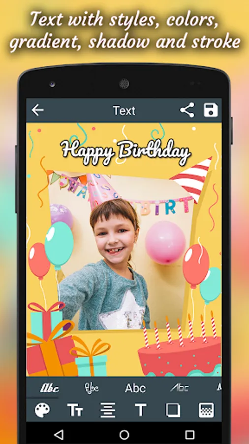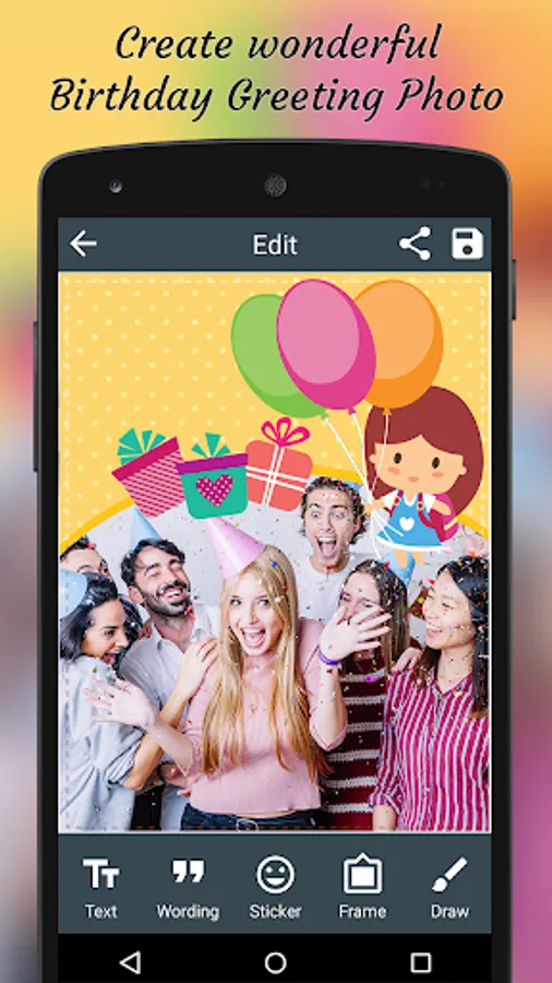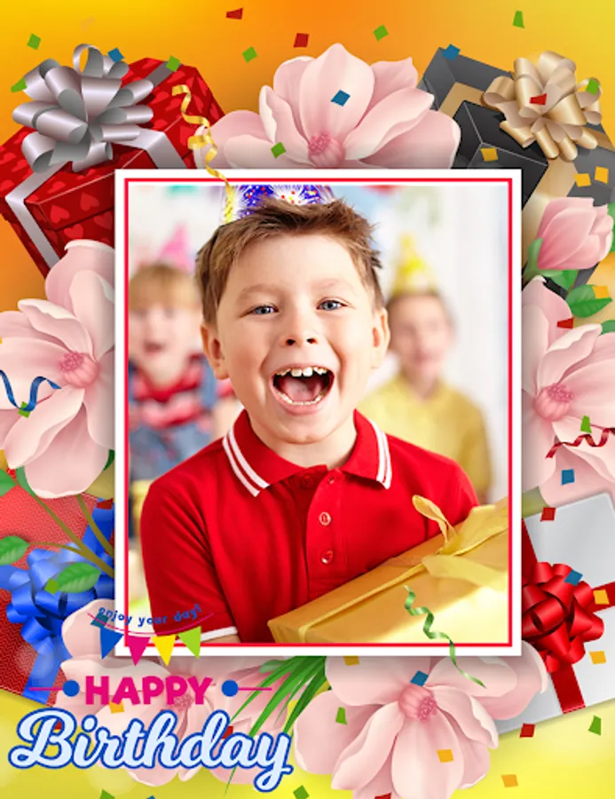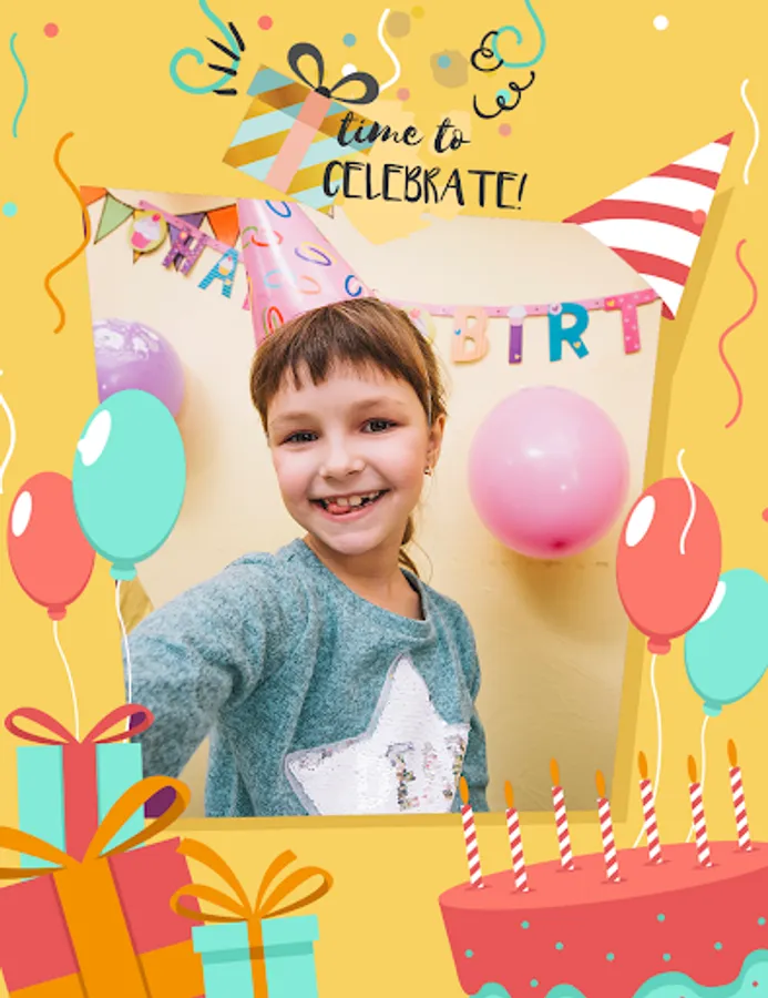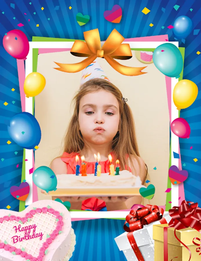 Create special birthday gift using your special one's photos and frames! Numerous frames are specially designed to beautify your pictures and create awesome Birthday photos!