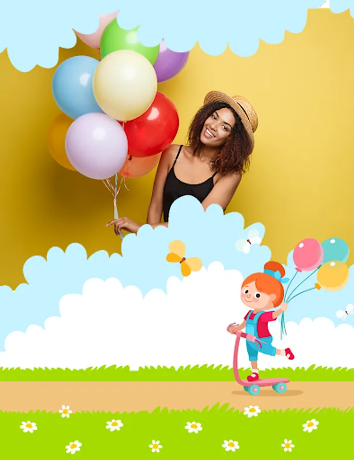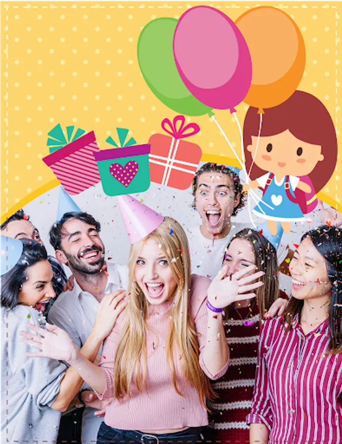 Photo frames are awesome way to say happy birthday. This free photo editor offers you frames, cakes, badges, garlands, gifts & various categories of stickers also you can draw patterns and colors over on yours picture.