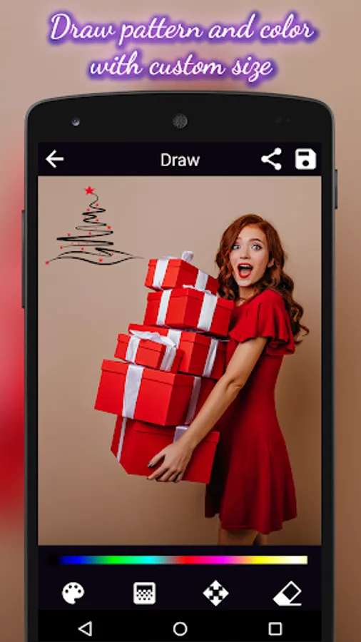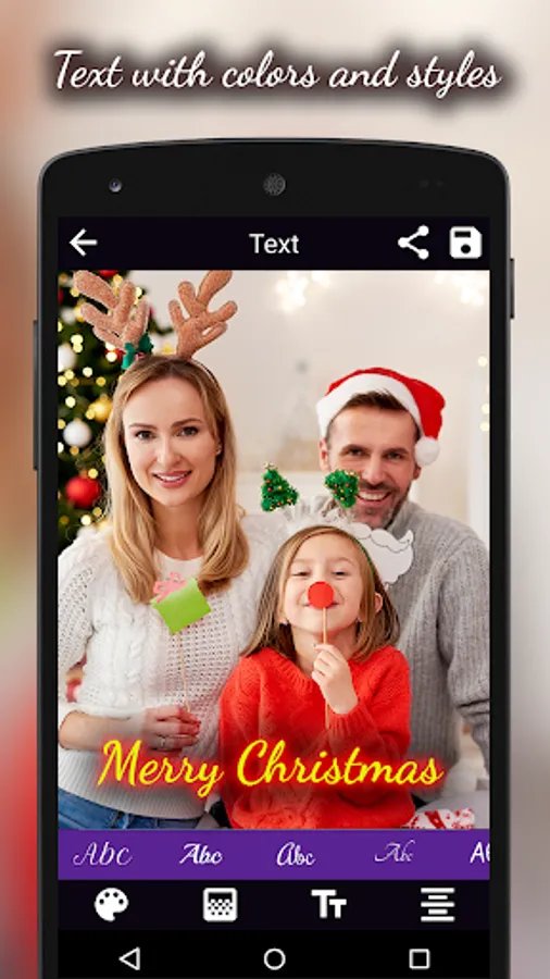 Just take a picture from camera or pick from gallery and add some awesome Snowman & funny Santa Stickers on it & add some Christmas Greeting texts and its ready to share with family & friends!