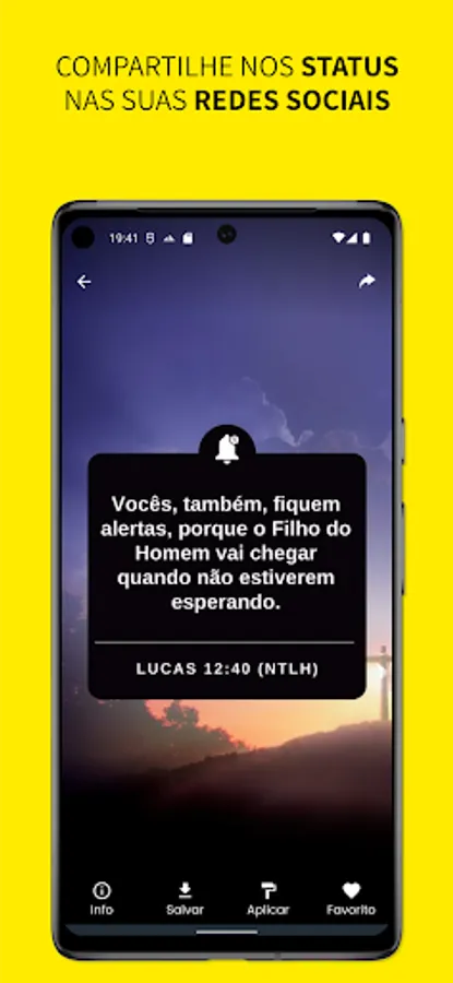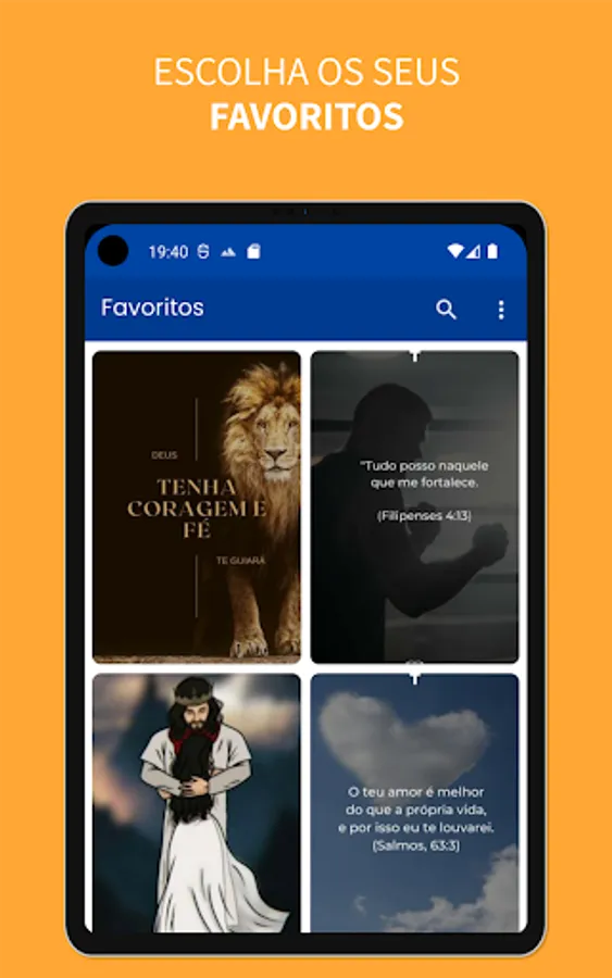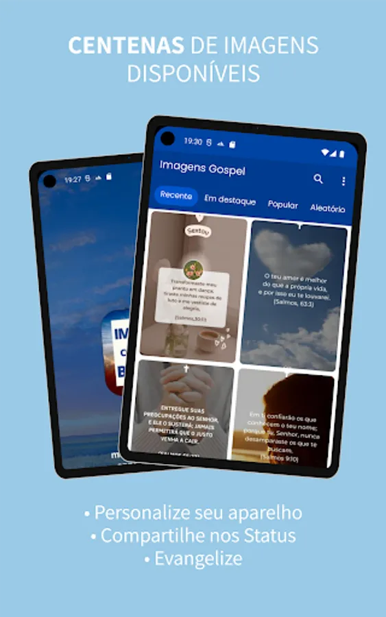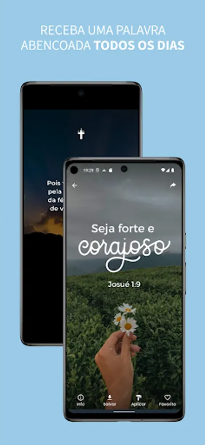 Light and free app with inspiring images and phrases that you can use on your phone as a background on your phone, with images for WhatsApp, Tumblr as well as sharing on Facebook, Instagram, Messenger, etc. with a beautiful and elegant way to announce the Word of God.