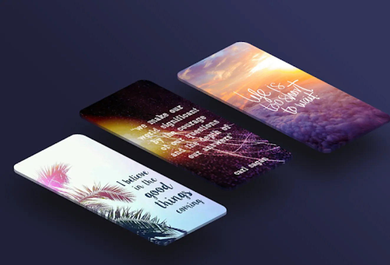 This application provides hundreds of collections of wallpaper designs with inspirational and motivational words with various themes such as about love, success, struggle, family, friendship, wealth, and so on.
