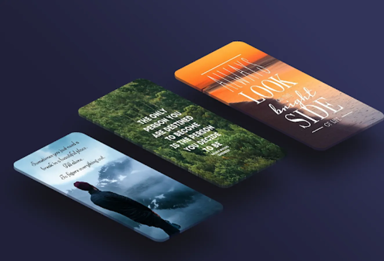 Very easy. Just browse the Inspirational gallery collection in this application and choose the wallpaper you like to make your wallpaper and lock screen look cool. In addition, you will continue to read motivational words every time you look at your cellphone.