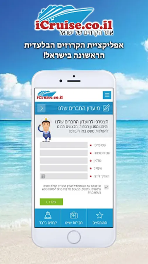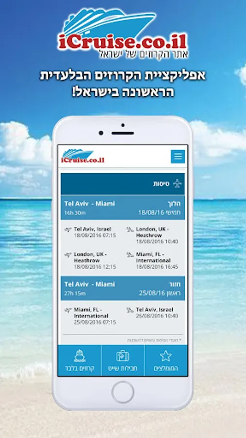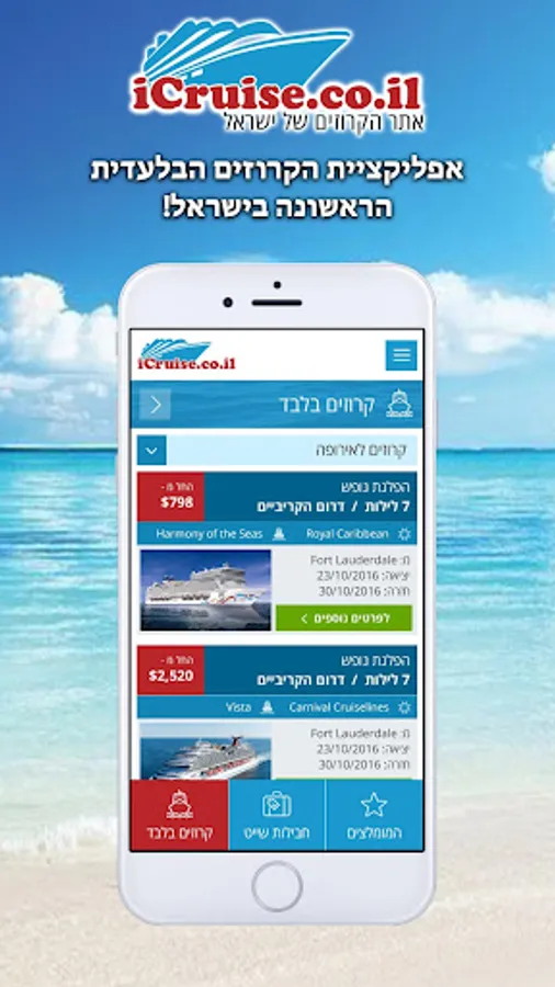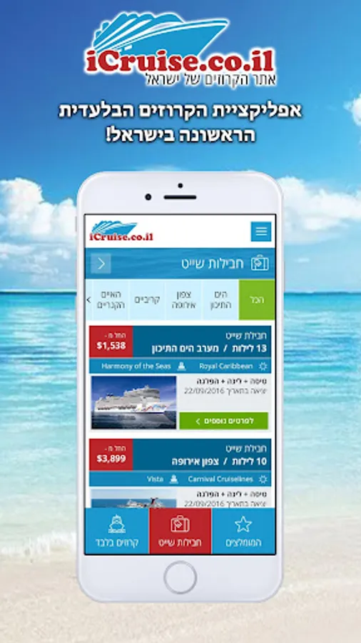 The first Hebrew app for the cruise world. Enjoy a variety of full cruise packages and cruise only online.