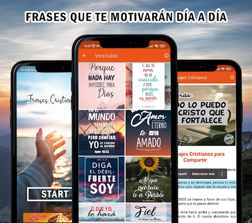 In this application you will find phrases from God with beautiful messages of encouragement ideal for all occasions and with a single phrase your spirits will rise immediately and you will have the desire to help other people to change their way of seeing life by sending them beautiful Christian verses, wise bible verses, biblical love messages.