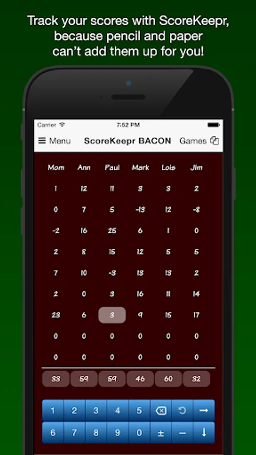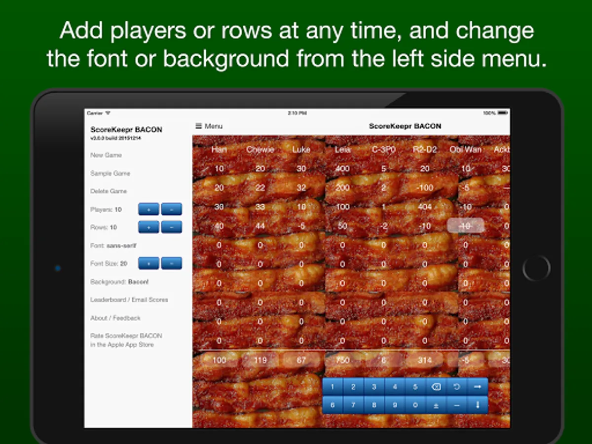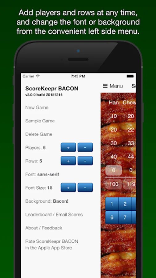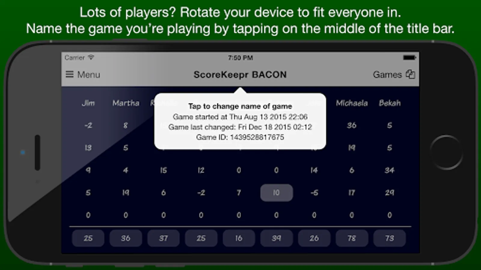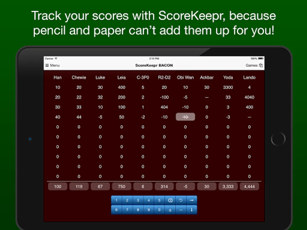 ScoreKeepr BACON version supports up to 99 players and 99 rounds of play!