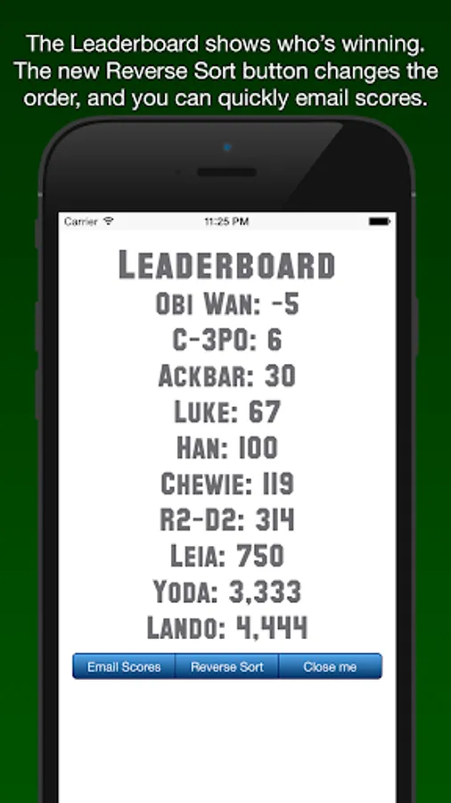 Email the results from the LeaderBoard, where players are shown sorted by total score. The scores can now be sorted by lowest first or highest first.