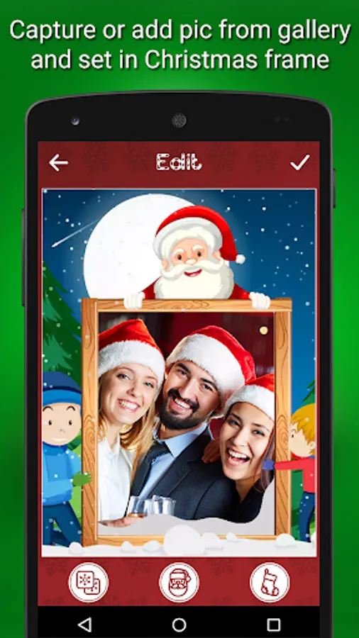 Merry Christmas and Happy New Year!!! Get cute stickers from Christmas Camera Photo Frames free download and decorate your pics in the most beautiful way! Santa Claus is coming to town earlier this year, bringing you beautiful photo montage maker that will embellish your holiday pics and leave everyone speechless. Enter your Christmas photo studio and begin with the best photo fun in your life!