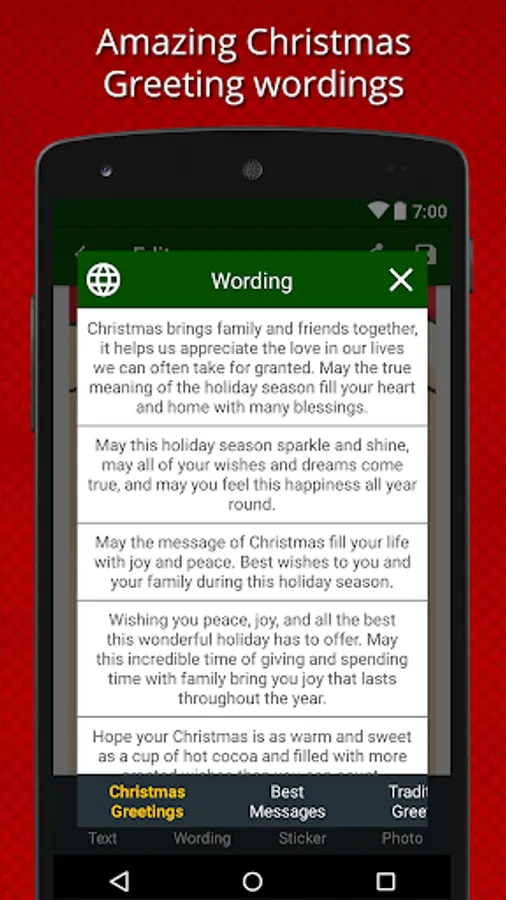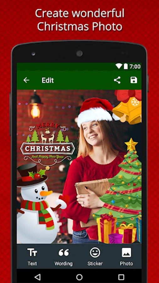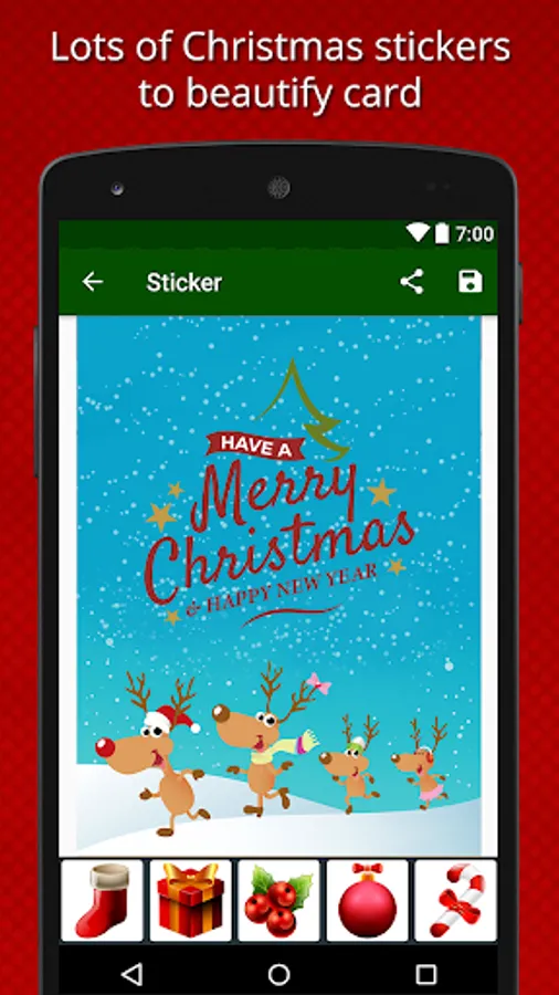 Christmas is a special day to celebrate winter with joy. On Christmas day if you send a greeting card to your friends and family members they will get surprised. Create your own custom Christmas greeting cards and send to your friends and family members. In this app we added the lots of fun features that you enjoy like add a photo from the phone gallery in greeting cards, add text in different styles, select your favorite stickers, add greetings quotes that you like and much more. So create your own card and share it with your friends on Social media network etc. Absolutely they will get surprised with your heart full Christmas wishes.