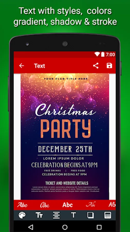 Using Christmas Party Invitation app as a party invitation maker gives you the chance to add a personal dimension to your celebrations. By creating online party invitations, you’re also giving yourself the option of sharing them via email or on social media.