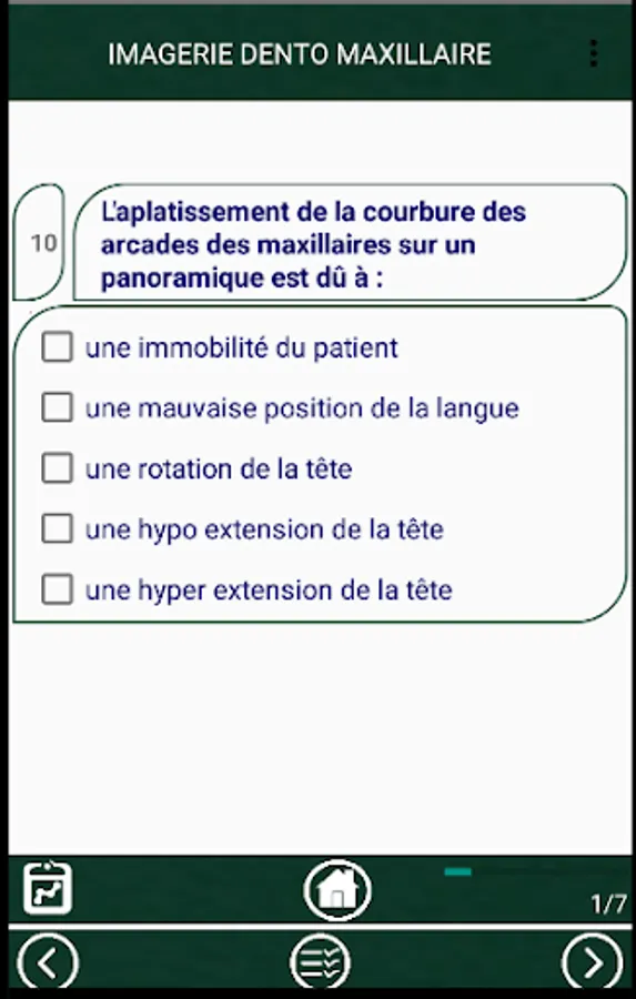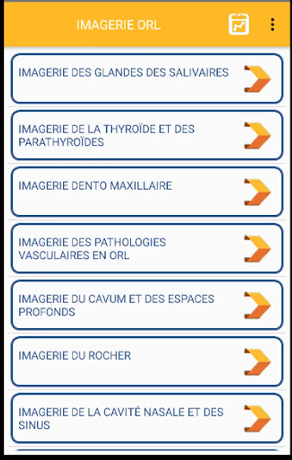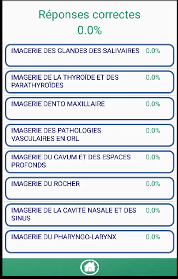 QCM in ENT imaging, is a mobile application intended for ENT imaging learners, allowing them to consolidate their knowledge. It is divided into several modules with multiple choice questions which are displayed in a random fashion, followed by instant responses.