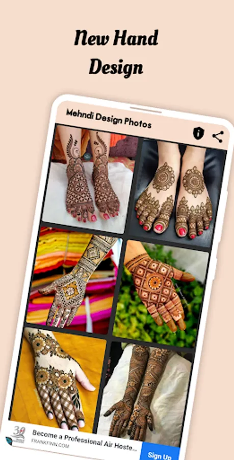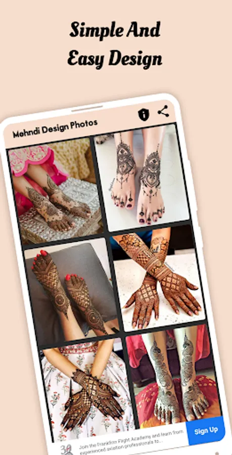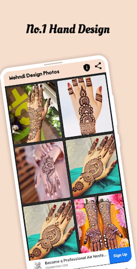 Mehndi Design 2023 plans most recent different types well-ordered and straightforward mehndi design plans for weddings or events. Mehndi Design 2023 contain most recent one of a kind simple mehndi designs and most recent high resolution mehndi designs images. Mehndi Design 2023 used by popular Mehndi Performers and it is their most favourite mehndi design app .Download this App and made your hands as pretty as ever.