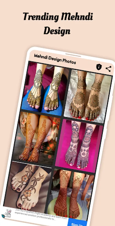 Mehndi Design 2023 is a mehndi design app for Ladies fashion. If you are Looking for the latest mehndi designs of 2023 then you need to download this mehndi designs app. Mehndi Design 2023 has latest mehndi designs for mehndi loving girls or brides. Mehndi Design 2023 is offline application to help those females who don't know latest and new trending mehndi designs for 2023.