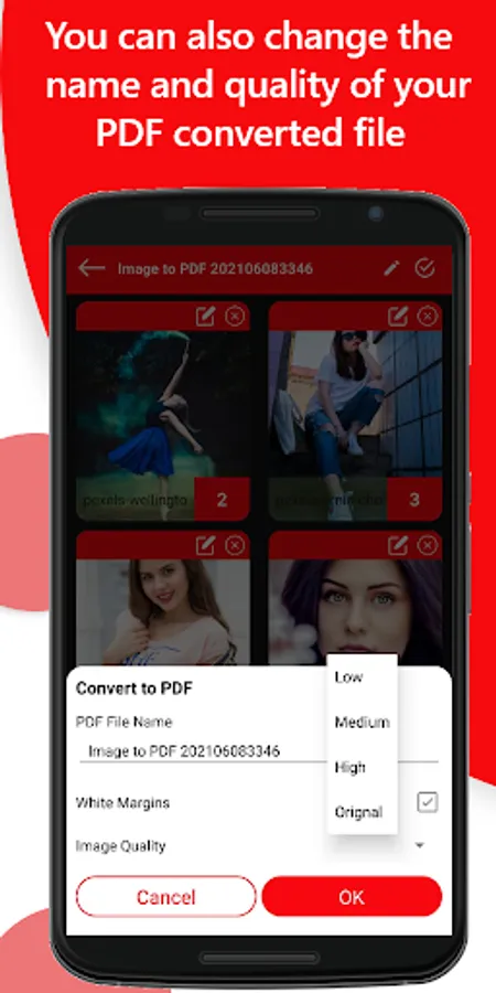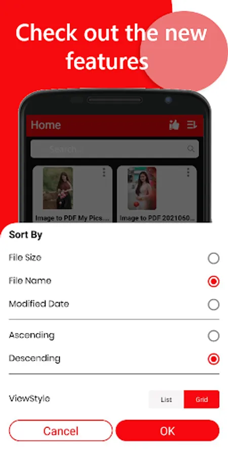 With image to PDF app, you can automatically sort images and PDF files by name, size, created date, modified date, etc.