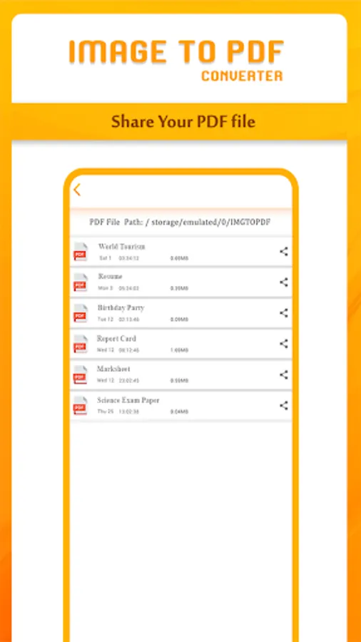 Easily send and share converted PDF files via social media, Bluetooth, Email, quick share, etc.