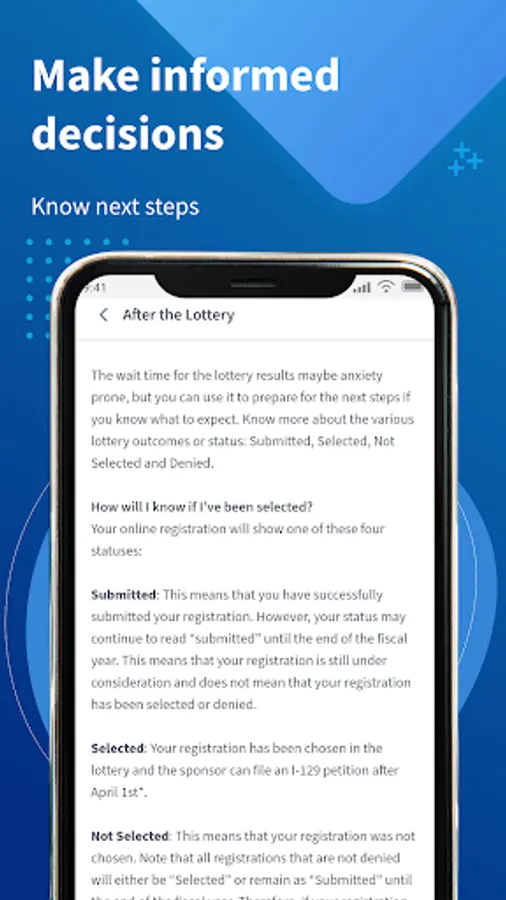 The App provides comprehensive information about the Lottery process and beyond. It helps beneficiaries: