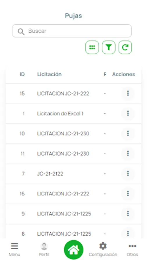Tender system for Suppliers of Pajonales S.A has: