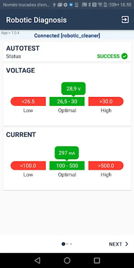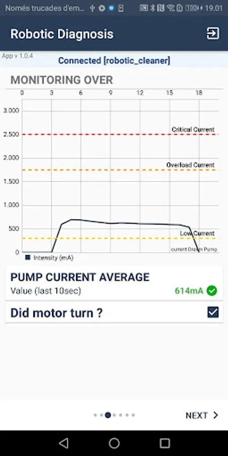 Fluidra Pro Robotic Diagnosis Screenshots