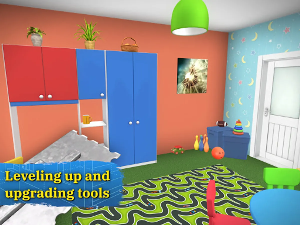 As you progress in House Flipper simulator you'll level up and improve your tools. Advance to the next levels to complete the tasks (quests) faster. Why hurt your hands when you can have gloves made of hardened smurf leather? Using unlocked items, you can arrange the interior of your office according to your own design. It can be stylish, but also ... A cat tree in the middle of the room? Why not? It's your idea after all! If you love playing simulation, house renovation, and home design games, you will fall in love with House Flipper renovation & decor game.