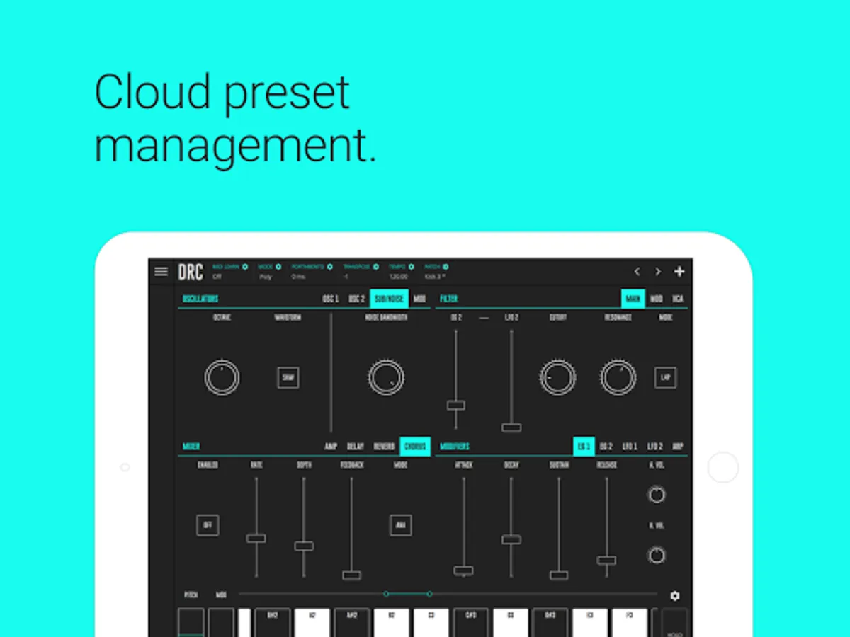Sign up for a free Imaginando account and sync your patches/presets across multiple devices with DRC’s cloud sync technology*. This powerful feature allows you to start the creative process on one device and continue on another, seamlessly.