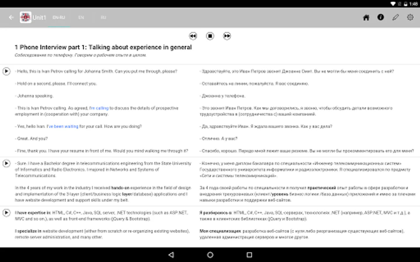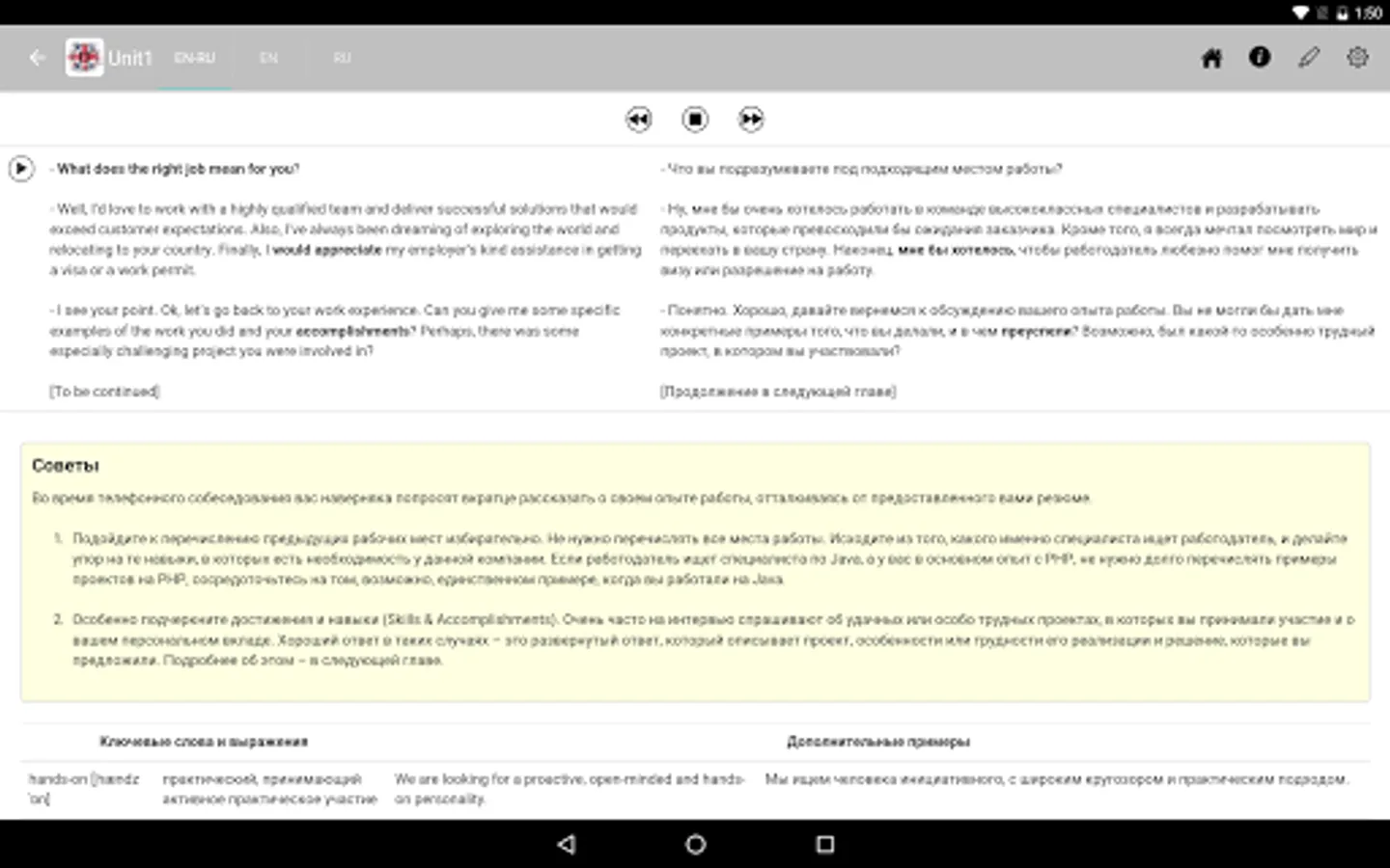 Listen to 20 topics in English while you read along. Enjoy cross-references between grammar and lexical units as well as some tips on how to nail a job interview.