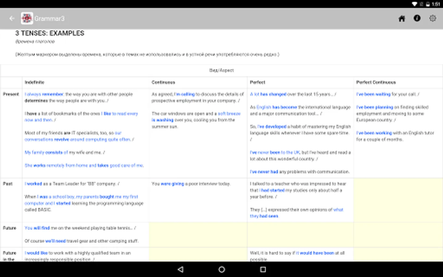 - 8 grammar units (practice most difficult grammar rules using relevant examples)