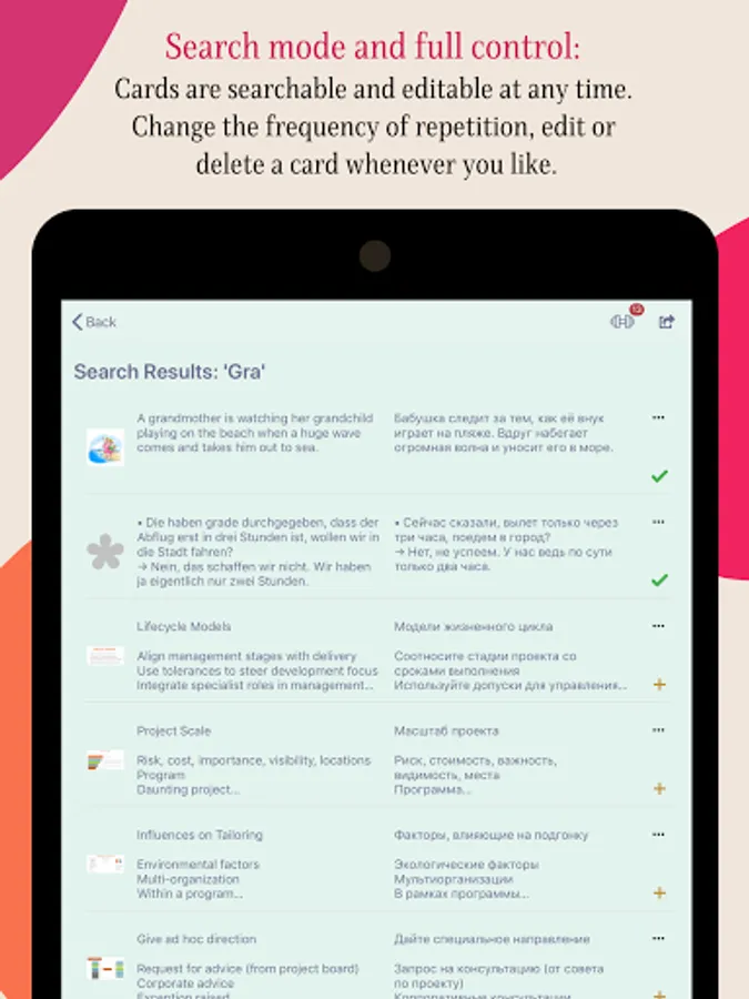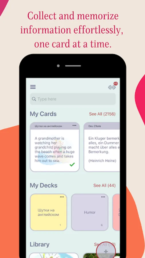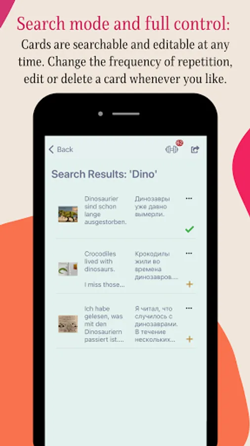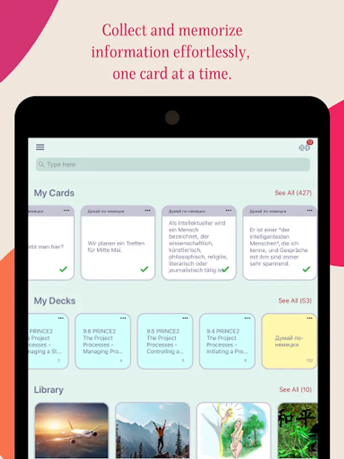 Take a picture of text from any textbook, poem, or social media post in a foreign language, and have it saved as a card in the app. Then, following a series of repetitions with the help of constant reminders – the information will be internalized in your long-term memory.