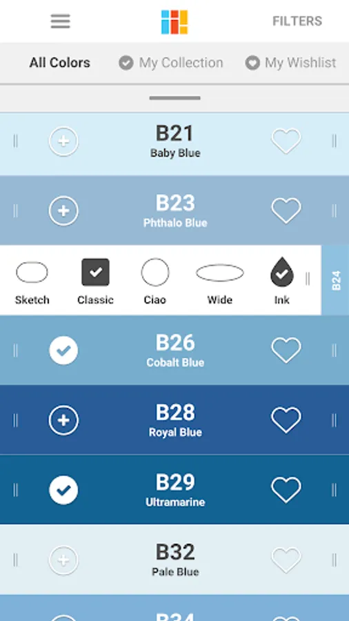 Finally, a better way to keep track of your Sketch, Ciao, Wide, and Classic markers. Build your collection, add to your wishlist, and explore all of the 358 colors—anytime, anywhere!