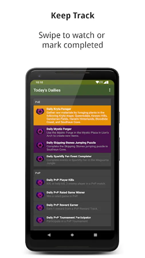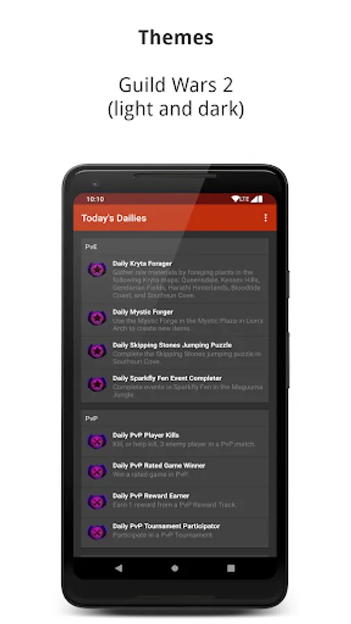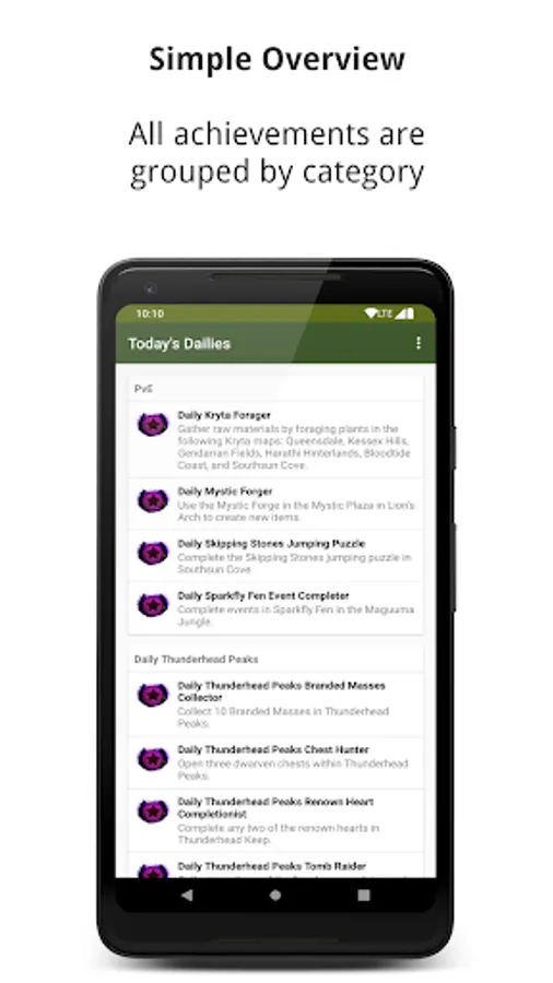This app allows you to easily see what daily achievements are up today in Guild Wars 2. It uses the official API to get the current information about dailies.