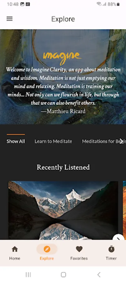 “Imagine Clarity is an app about meditation, but meditation is not just emptying our mind and relaxing. It is training our minds. If we learn to cultivate as skills our inner qualities such as benevolence, compassion, clarity, inner peace, inner strength, not only will we flourish in life, but through that we can also benefit others, care for more social justice and future generations.” —Matthieu Ricard
