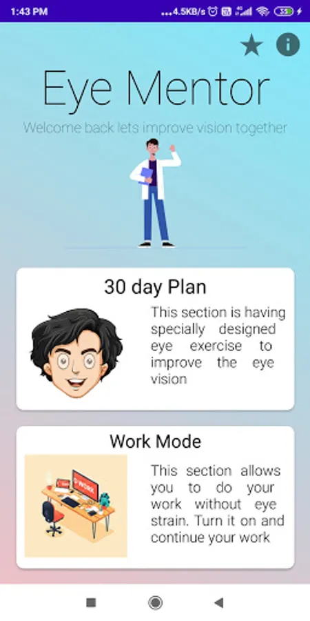✩ This app removes the eye stress while working using the 20-20 eye rule.