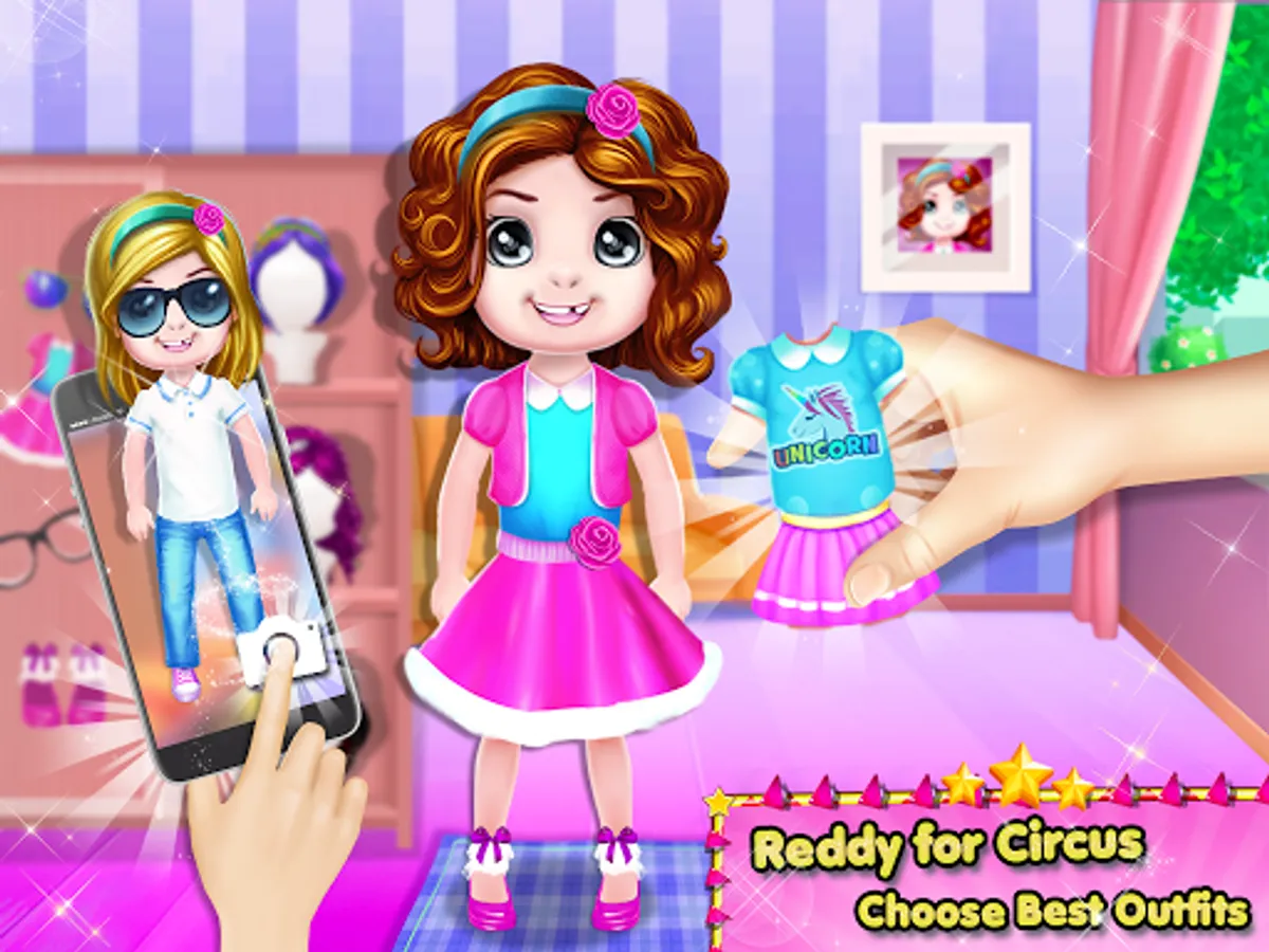 This circus game includes four different game types puzzle, jigsaw puzzle, and dress the clown.