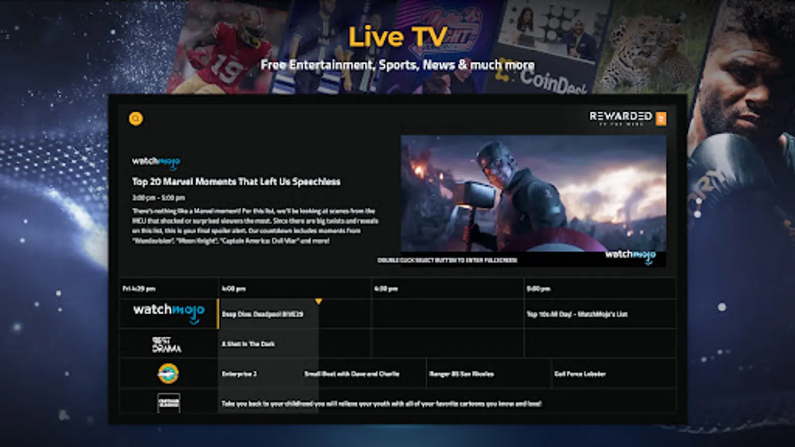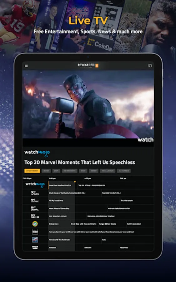 Rewarded.tv is an ad-free, subscription-free, TOTALLY FREE, streaming service that PAYS YOU for enjoying and sharing your favorite TV shows and movies! Earn crypto in real-time for watching movies, TV shows, sports and news.