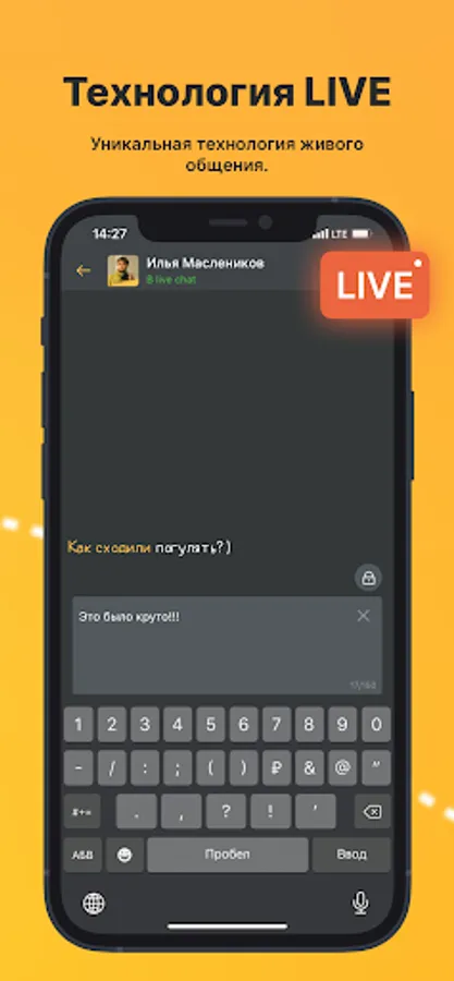 Благодаря уникальной технологии Live, вы можете безопасно обмениваться сообщениями в режиме реального времени. Переписку невозможно перехватить благодаря уникальной технологии представления текста. Просто перейдите на вкладку live и попробуйте.