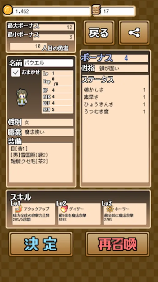 ボーナスが高いほど、能力の高い勇者になるよ!