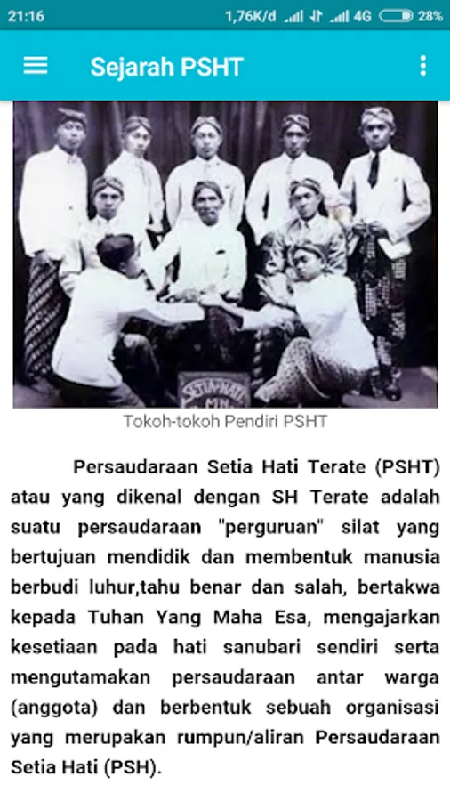 as a martial arts education Setia Hati. In 1922, pioneers of independence hero during 1