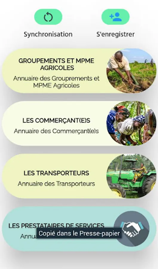 Tô Yébana aims to provide a directory of agricultural players (Groups, MSMEs, traders, transporters, service providers) to the general public, so that they can benefit from national visibility.
