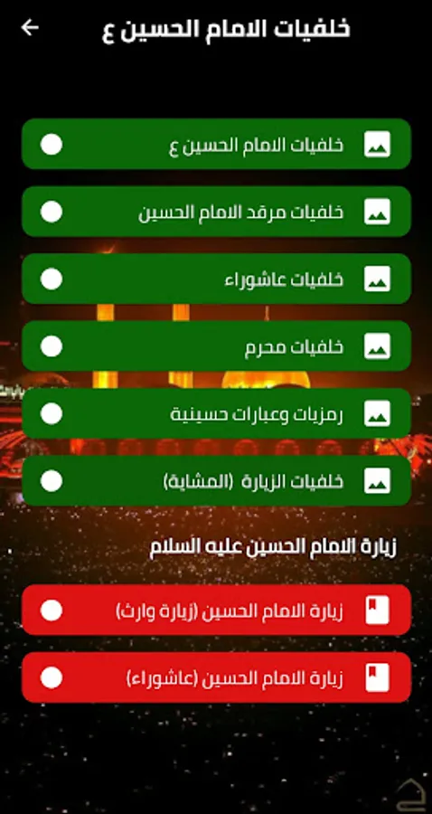 The application of Imam Hussein wallpapers contains the visit of Imam Hussein, the visit of a heir and the visit of Ashura