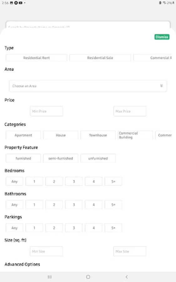 Filter results to match your search: size, number of rooms, price, etc.