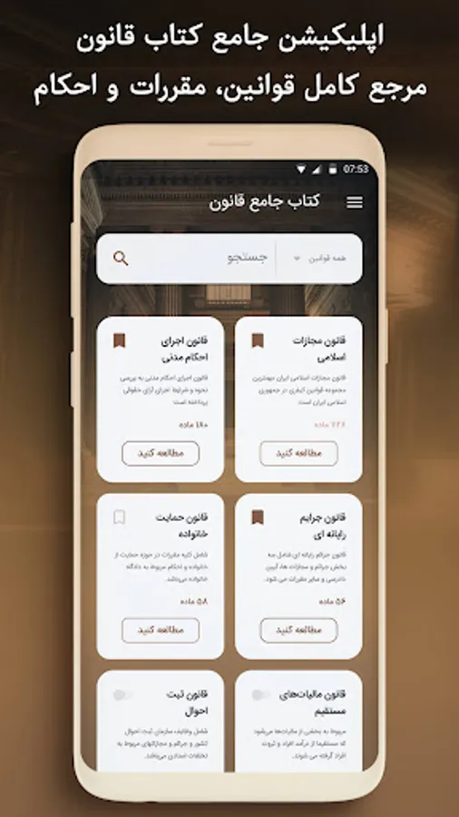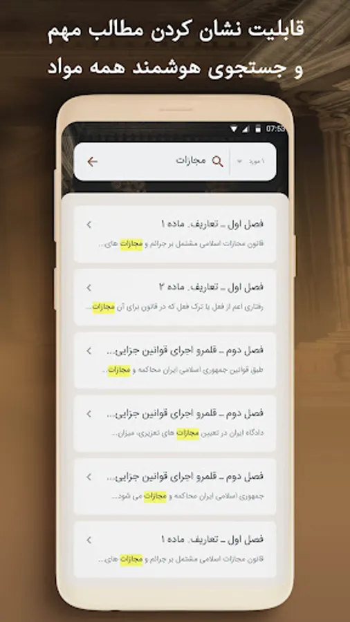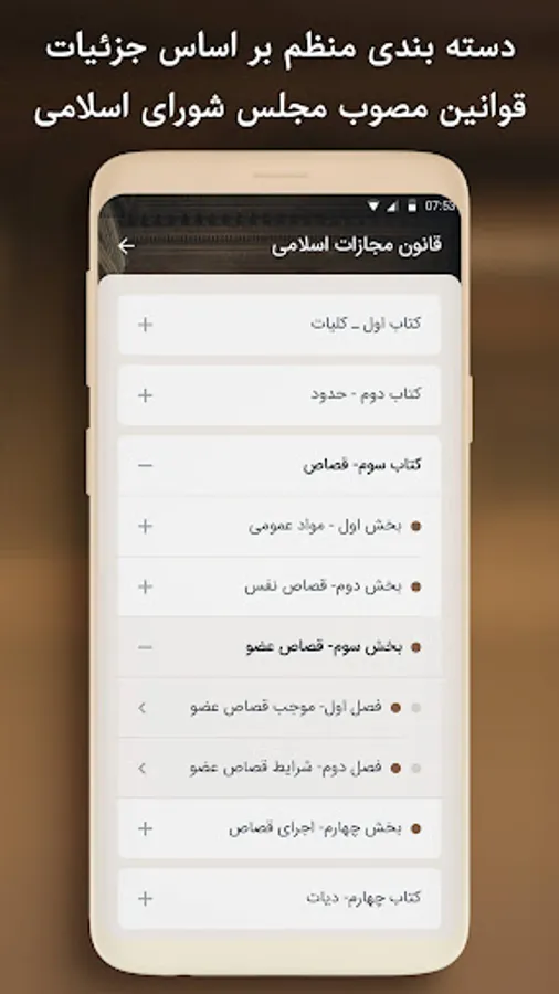 برنامه کتاب قوانین کیفری و مجازات اسلامی برای قبولی در آزمون وکالت برای شما کاربران عزیز ارائه شده است تا به مرجع کامل قانون جزا و مجازات های کیفری و حقوقی دسترسی داشته باشید.