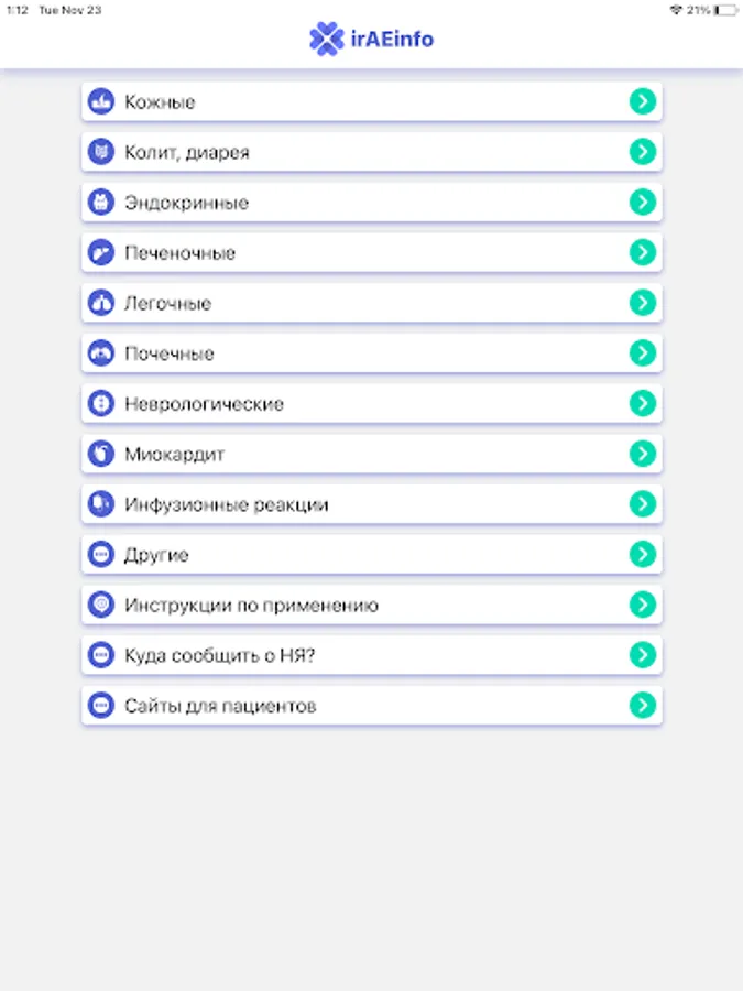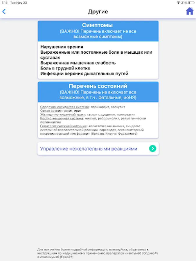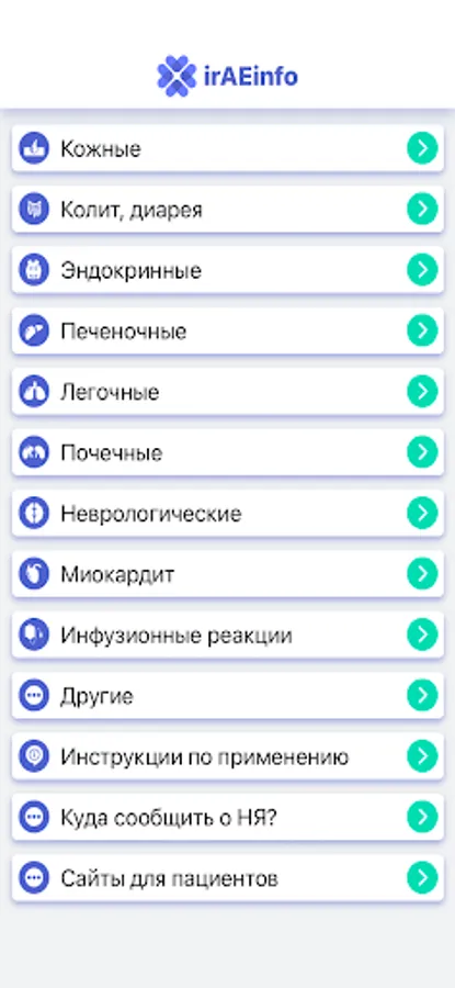 The “irAE info” application is intended for practitioners who use immune checkpoint inhibitors (nivolumab, ipilimumab) in their practice for malignant neoplasms in adults.