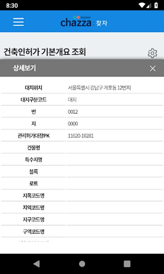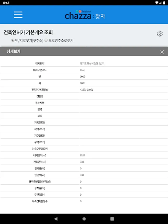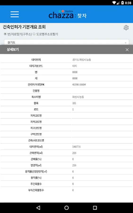 전국 자치단체의 건축행정시스템(세움터)를 통해 생성된 건축행정정보 중 건축인허가와 관련된 대지면적, 건축면적, 건폐율, 연면적, 용적율, 건축물 수 등의 기본정보를 제공한다.
