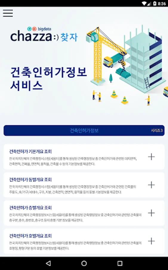 전국 자치단체의 건축행정시스템(세움터)를 통해 생성된 건축행정정보 중 건축인허가와 관련된 건축물의 주용도, 호/가구/세대수, 구조, 지붕, 건축면적, 연면적, 용적율 등의 동별 기본정보를 제공한다.