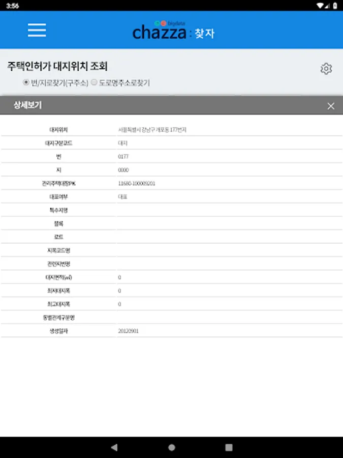 전국 자치단체의 건축행정정보시스템(세움터)를 통해 생성된 주택인허가와 관련된 대지의 대지위치, 대지폭, 지목 등에 대한 대지정보를 제공한다.