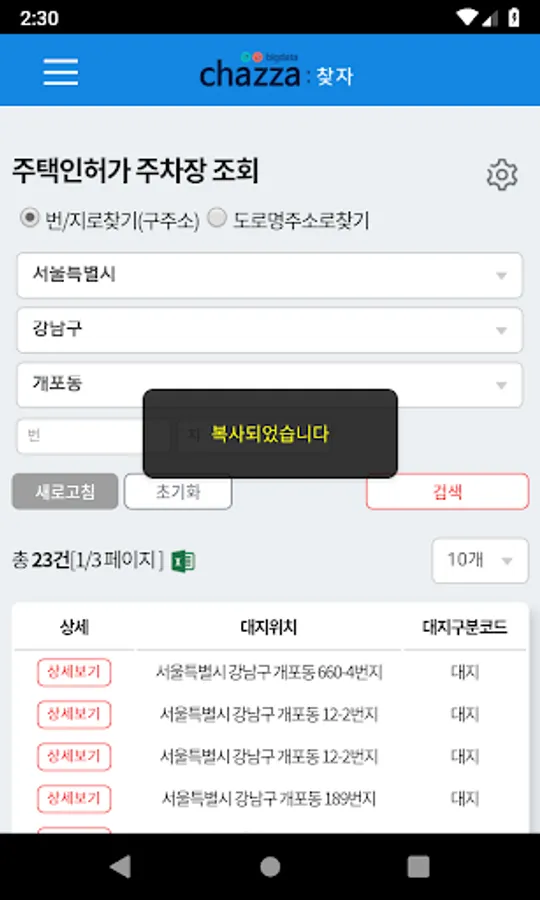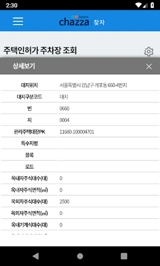 전국 자치단체의 건축행정시스템(세움터)를 통해 생성된 건축행정정보 중 주택인허가와 관련된 부설주차장의 대지위치, 지목구분등에 대한 정보를 제공한다.
