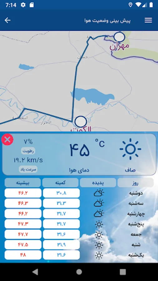 This application software is updated on the web and with minimum mobile internet speed and provides weather services in cities and routes leading to pilgrimage cities in Iraq.