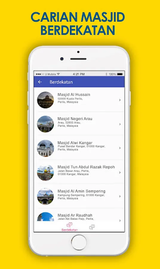 1. Cari Masjid berdekatan: Pengguna boleh mencari Masjid berdekatan di Negeri Perlis