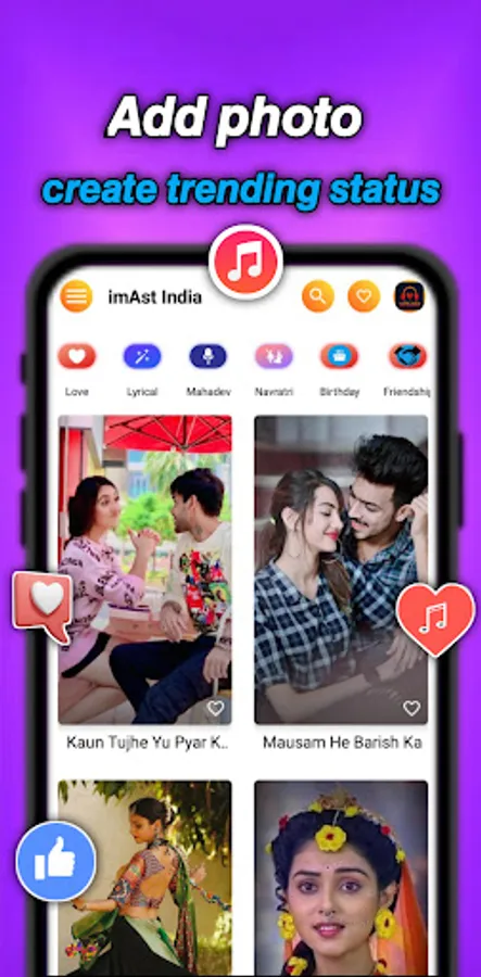 imAst video status maker application is the easiest way to create, edit and share amazing videos. here you can find the best different types of HD video templates to make amazing video status. you can mix up your different favorite photos