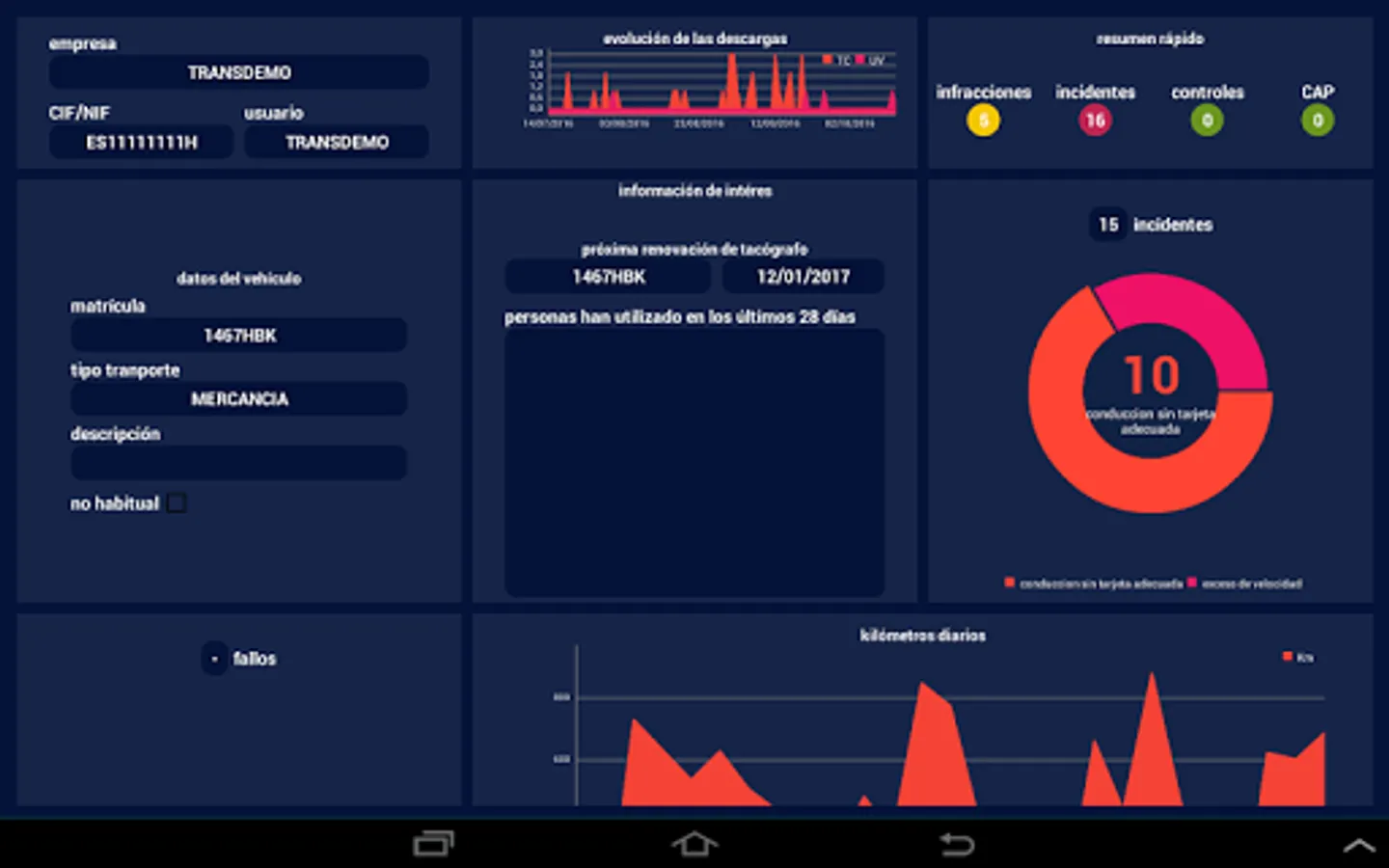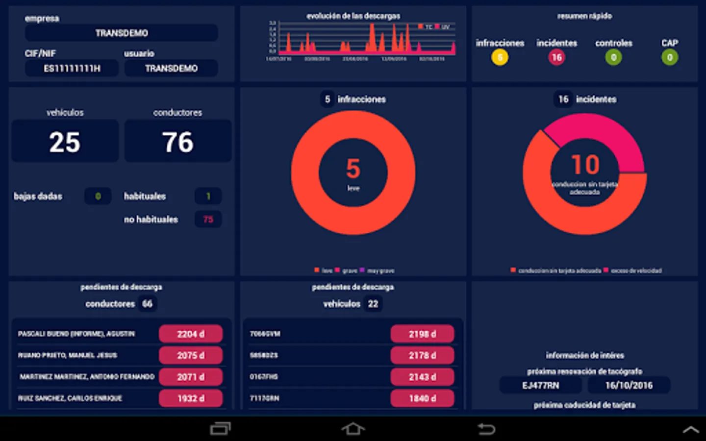 With the OPENTACH CONNECT application, the user can access all relevant information on drivers and vehicles in your company. Globally allowing you to view the status of downloads, the offenses committed or the incidents.