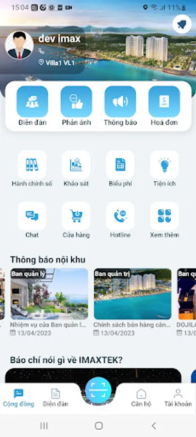 - Cung cấp các tính năng tương tác hai chiều giữa cư dân – ban quản lý/ban quản trị/chính quyền địa phương được cấu hình tùy theo khu đô thị, dân cư. Các tính năng tương tác như: chat, tin tức, thông báo, phản ánh, khảo sát, đăng ký dịch vụ, thủ tục hành chính, …